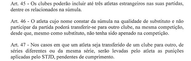 Artigo 46 do Regulamento Geral de Competições da CBF (Foto: reprodução)