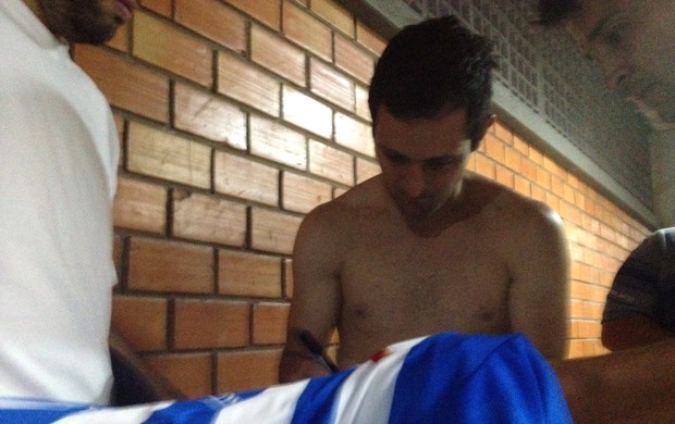Evando destribui autógrafos na Ressacada (Foto: João Lucas Cardoso / Globoesporte.com)