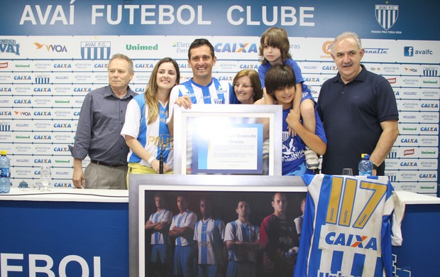 Antes de falar oficialmente como ex-jogador de futebol, e do Avaí, foi introduzido pelo o presidente do clube, que fez a última homenagem verbal ao ídolo alviceleste. João Nilson Zunino ainda disse que gostaria de ter esperado um pouco mais para a aposentadoria do ‘iluminado’, mas foi a vontade do atacante que prevaleceu.