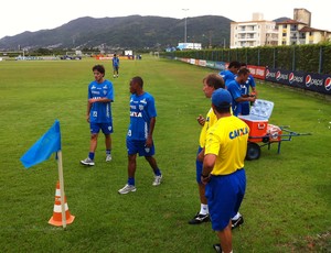 À tarde, o grupo realizou corrida intensa em volta do campo durante, aproximadamente, uma hora e meia. Depois de abdominais e alongamentos, os jogadores foram dispensados. O goleiro Aleks, novo titular do gol azurra, brincou com a intensidade dos treinos.
