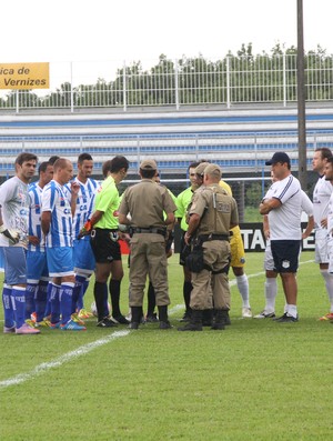 Segundo o relato do árbitro da partida em Palhoça, Rodrigo D’Alonso Ferreira, em súmula, a partida não foi realizada por falta de segurança. O Tenente-coronel da Polícia Militar de Santa Catarina Sr. Áureo não garantiu a segurança de jogadores, e árbitros que trabalhariam na partida no Renato Silveira.